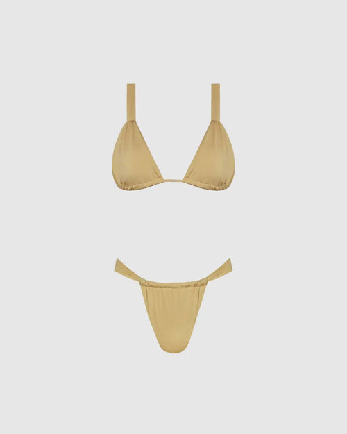 • Alana bikini in light yellow. Belamer is a conscious beachwear brand, crafting elevated designs for women valuing nature and responsible consumption. The brand prioritizes elegance and minimalism, using fine recycled materials and local craftsmanship, guided by 'less is more' philosophy.