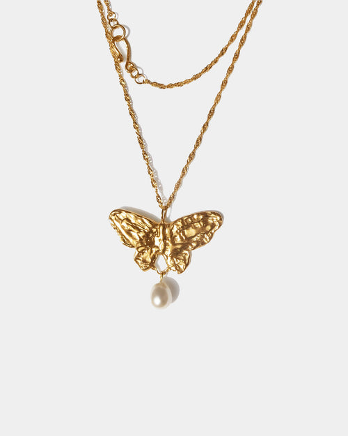 - Long Singapore necklace with butterfly talisman with freshwater pearl pendant. Can be used as a choker (two turns). Handmade clasp.