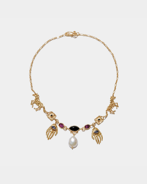 • Constance necklace. Beatriz Jardinha is a Portuguese designer creating jewellery that brings ancient and rudimentary techniques together with ethereal concepts. In her Lisbon atelier, Beatriz designs and makes every piece by hand. Her pieces are full of symbology and mythological, religious and mystical references to convey the power of these emblems and the cultural and anthropological memories associated with them.
