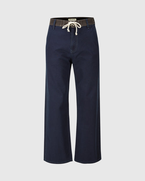 • Foss jeans trousers in dark blue. Huarte is a Portuguese brand with a mediterranean vibe created by Victor Huarte, a Spanish fashion designer that moved to Portugal in 2017.
