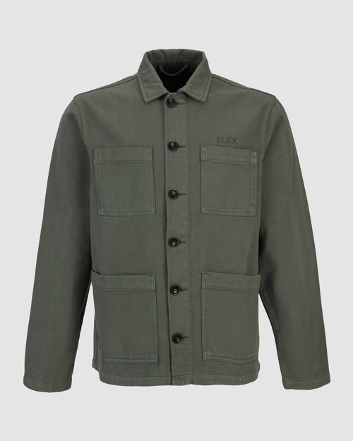 - J.2.2.1 work jacket twill in green. ELEX - Where Clothes Embrace Culture. Rooted in Lisbon's vibrant energy, ELEX celebrates more than just fashion. Its garments reflect a commitment to quality, community, and the stories that shape us. Join ELEX in embracing diversity and creativity, under the warmth of the Lisbon sun.