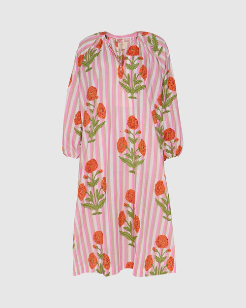 • Lara dress in blush mandarine.  SISSEL EDELBO is a brand that celebrates responsible fashion. Since 2004, SISSEL EDELBO has redefined upcycled fashion, blending vintage Indian textiles with a colorful, feminine boho aesthetic. Led by Jeanne Sissel Thomsen and Chris Elmengaard, this brand combines creativity, sustainability, and exceptional craftsmanship to deliver stunning, one-of-a-kind pieces.