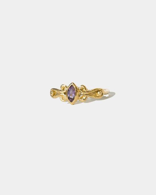 • Assa ring in 24k gold plated silver 925 with natural marquise amethyst stone. Beatriz Jardinha is a Portuguese designer creating jewellery that brings ancient and rudimentary techniques together with ethereal concepts. In her Lisbon atelier, Beatriz designs and makes every piece by hand. Her pieces are full of symbology and mythological, religious and mystical references to convey the power of these emblems and the cultural and anthropological memories associated with them.