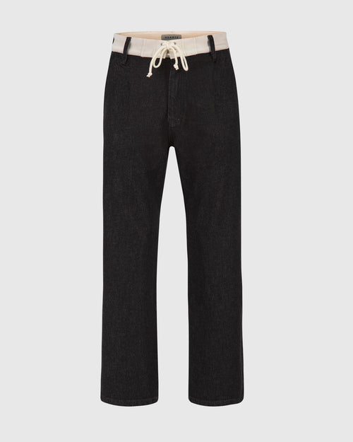 • Denim jeans trousers in navy blue. Huarte is a Portuguese brand with a mediterranean vibe created by Victor Huarte, a Spanish fashion designer that moved to Portugal in 2017.
