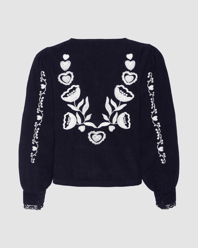 Feminine, loose fit top made in leftover cotton baby corduroy